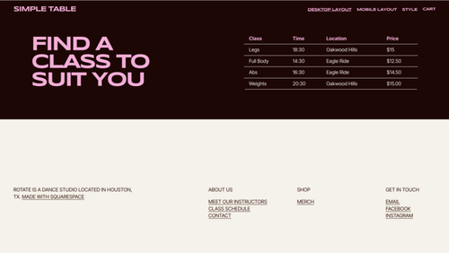 Place a Simple Table anywhere on your website. Perfect for Timetables or Portfolios.